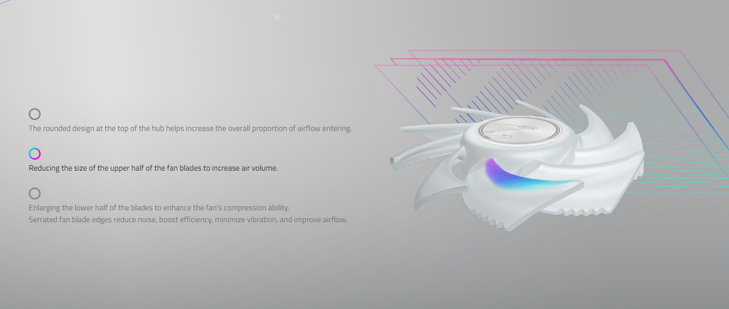 | Fan | Spec : 3 x 120mm ARGB Fans Speed : 800~2300 RPM +/-10% Bearing type : HDB Air Flow : 64.95 CFM Air Pressure : 2.93mmH20 Noise Level : 12.8~36.9 dBA |