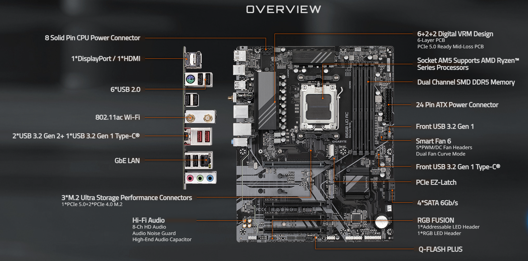 Motherboard Gigabyte B650 UD AC DDR5 AMD (R.V 1.0 )