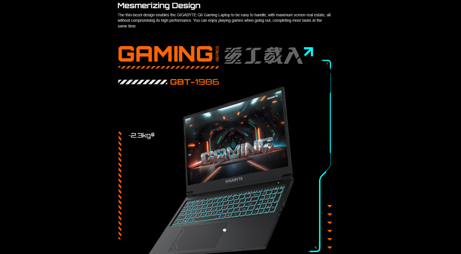 Gigabyte G6 MF Gaming Laptop, 16″ WUXGA 165Hz Display, Intel Core i7-13620H Processor, 16GB RAM, 1TB SSD, GeForce RTX 4050 6GB Graphics, FreeDOS, Black / MF-H2EE894KD