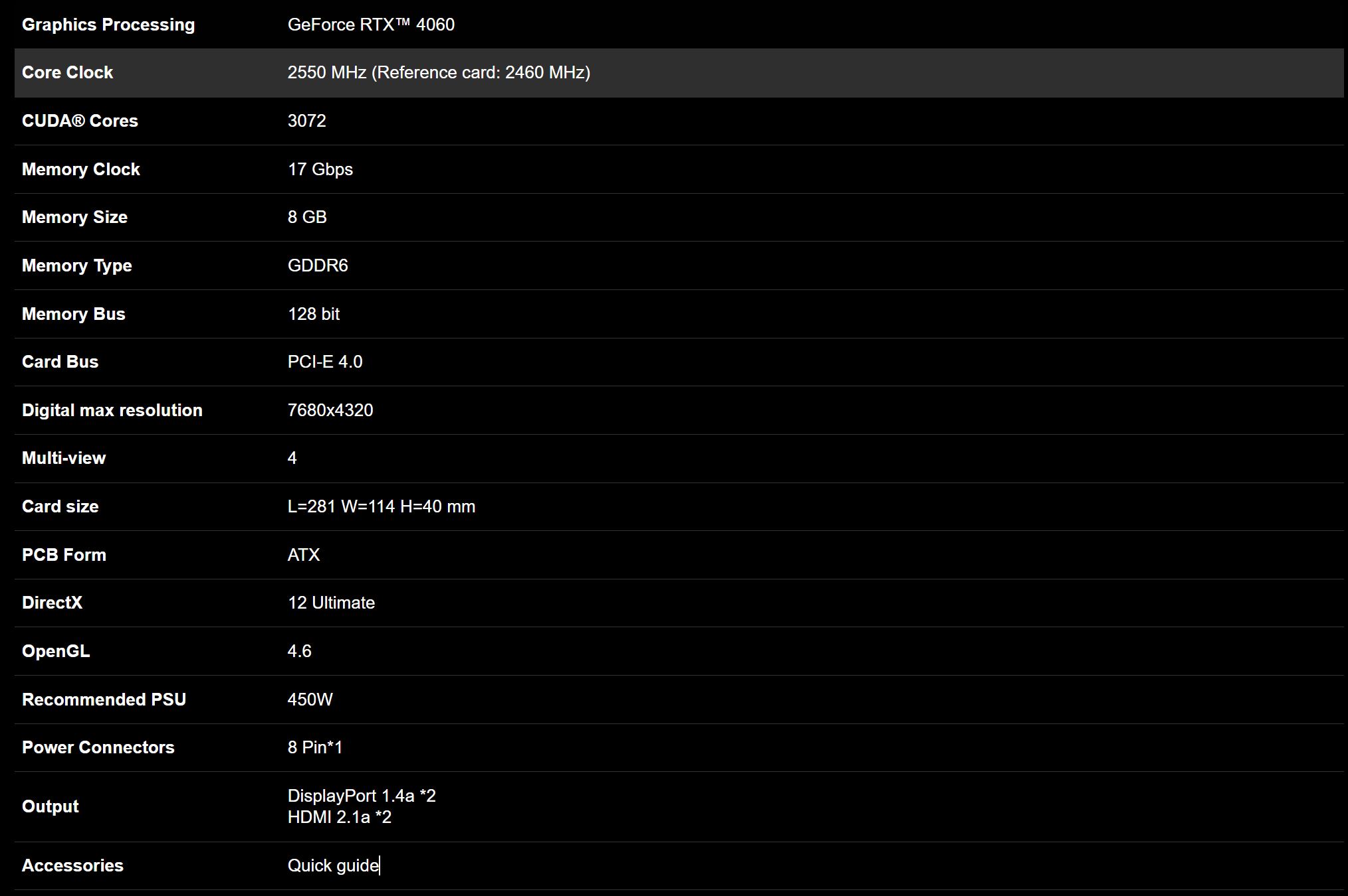 Gigabyte GeForce RTX 4060 Gaming OC 8G Graphics Card