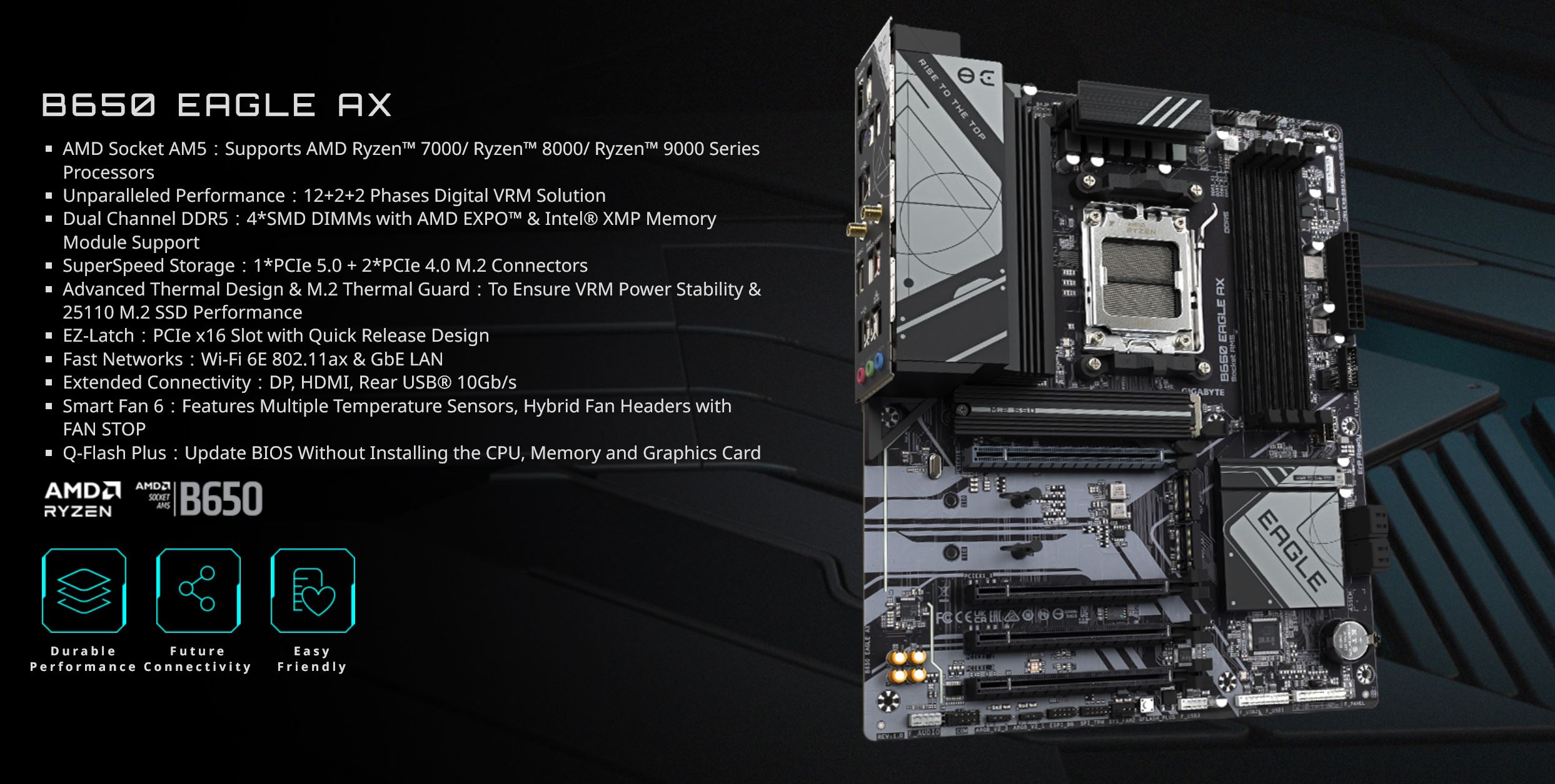 – AMD Ryzen™ 8000 Series-Phoenix 1 Processors support PCIe 4.0 x4/x2 SSDs