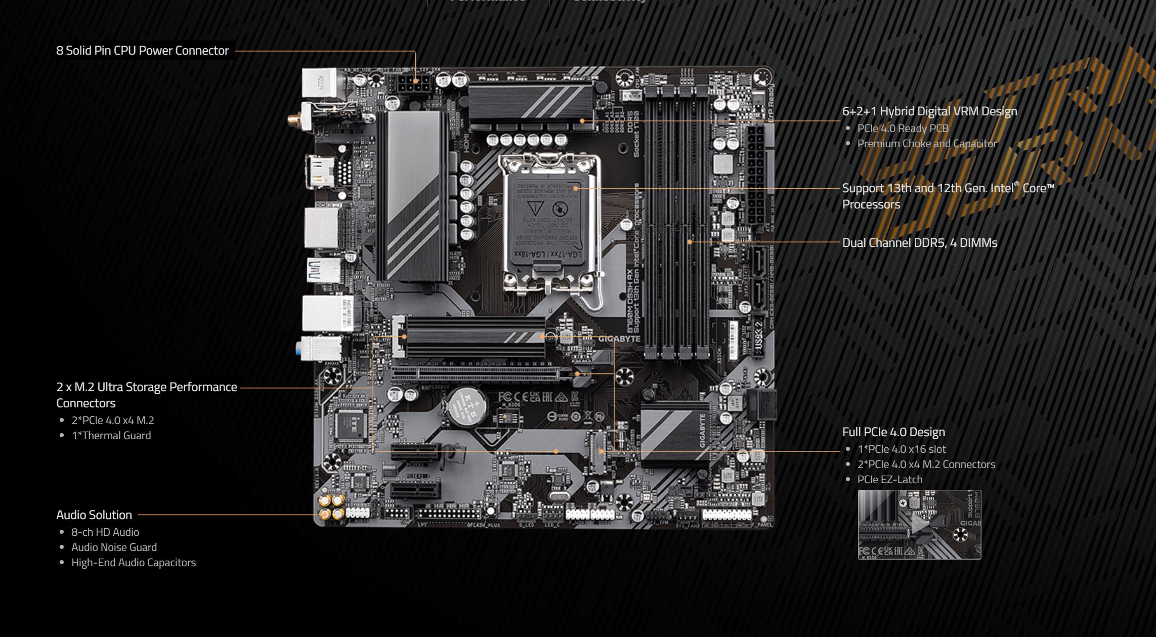 CPU Socket LGA1700: Supports 14th, 13th, and 12th Generation Intel® Core™, Pentium® Gold and Celeron® Processors.
