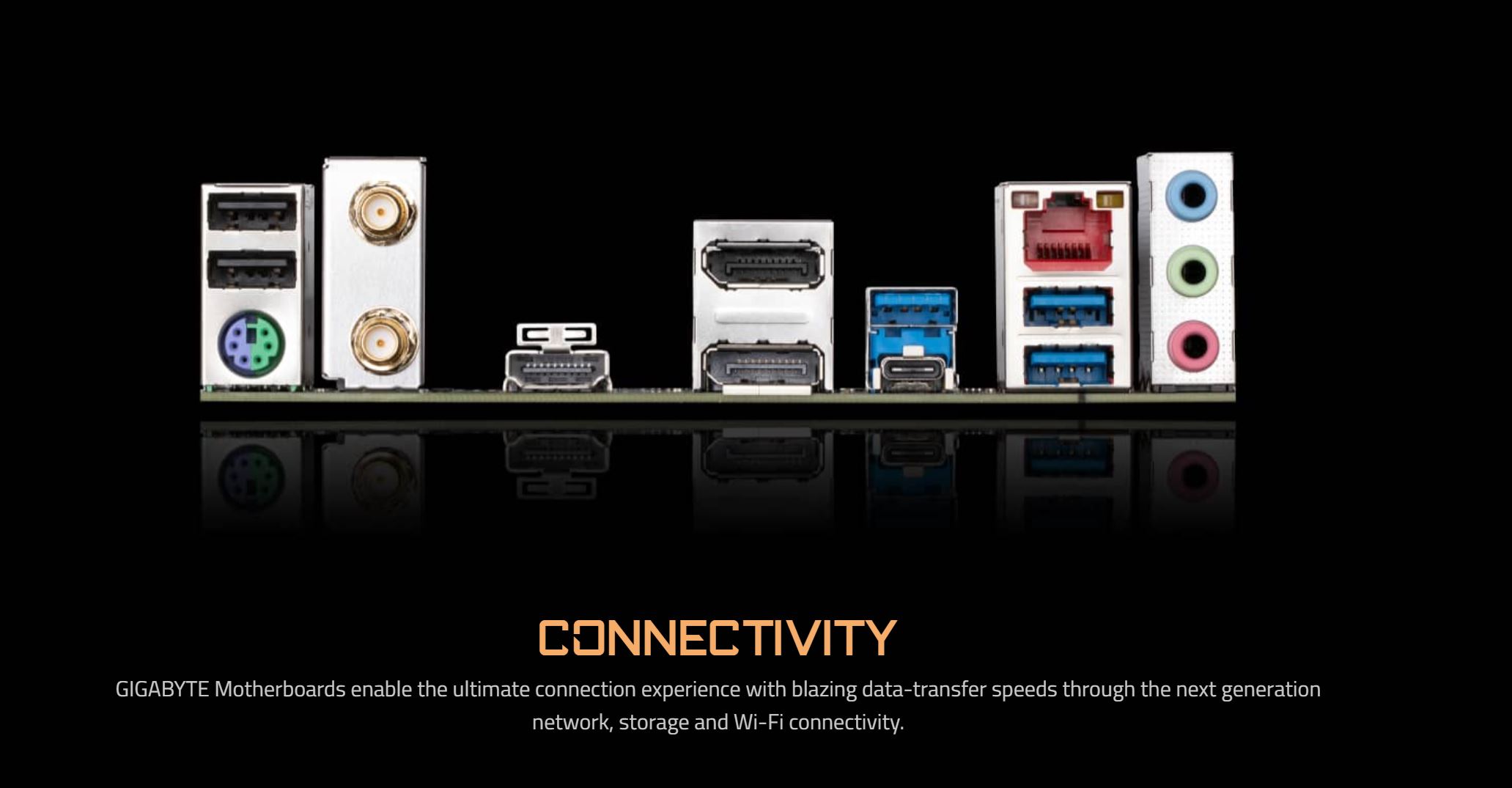 Back Panel Connectors Ports USB, PS/2, SMA antenna, HDMI, DisplayPort, RJ-45, Audio.