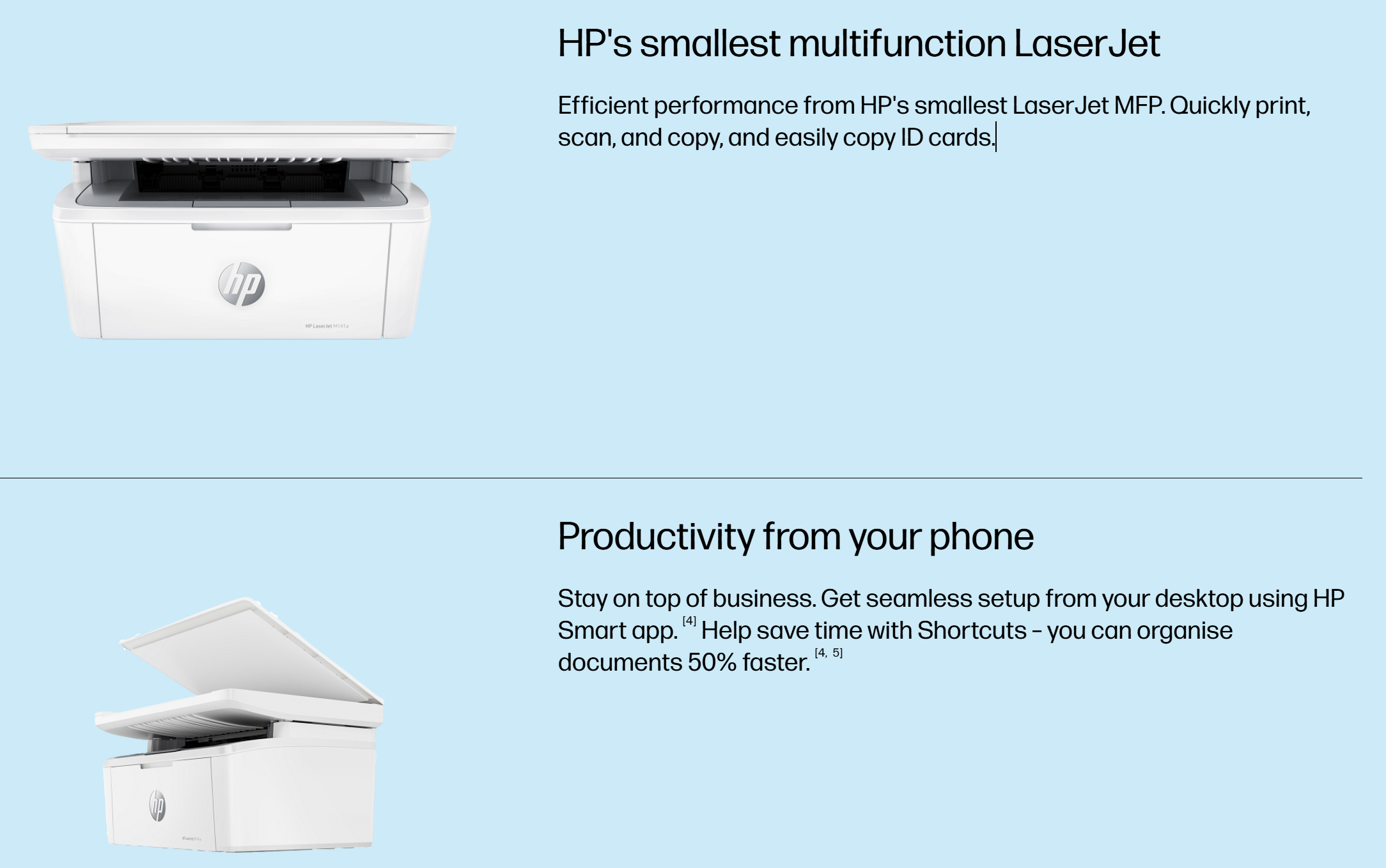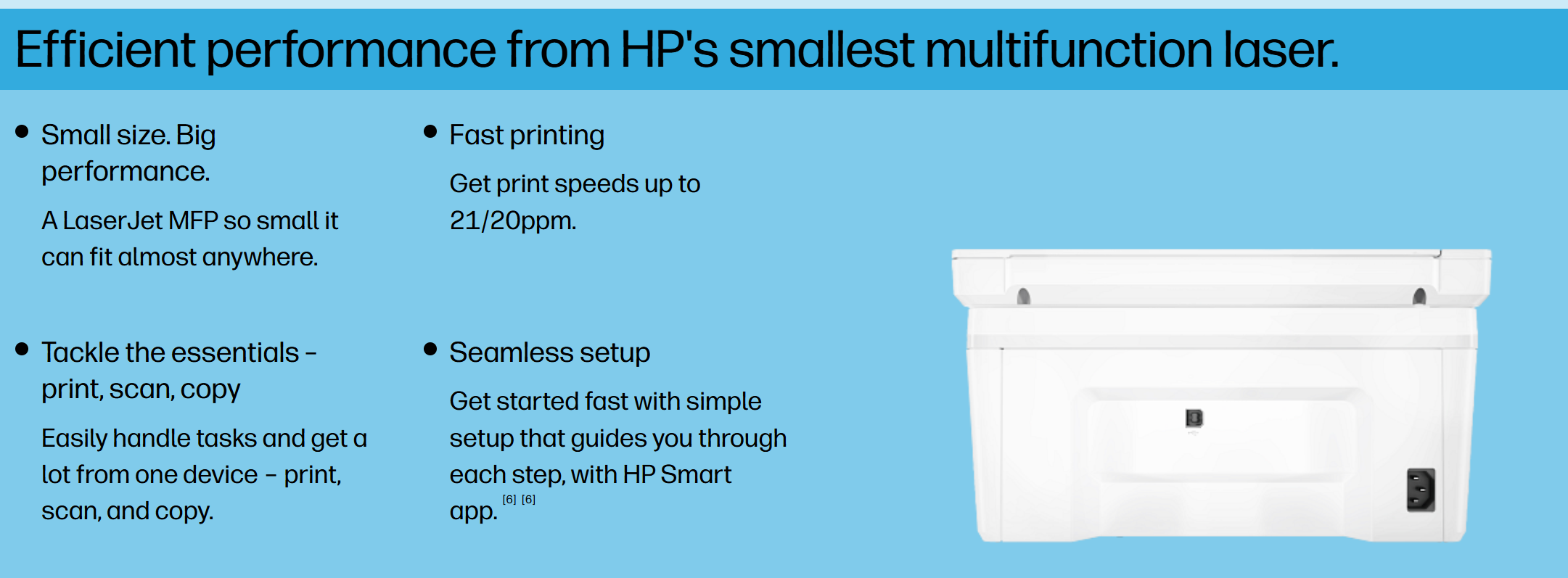 | Small size. Big performance. | A LaserJet MFP so small it can fit almost anywhere. |