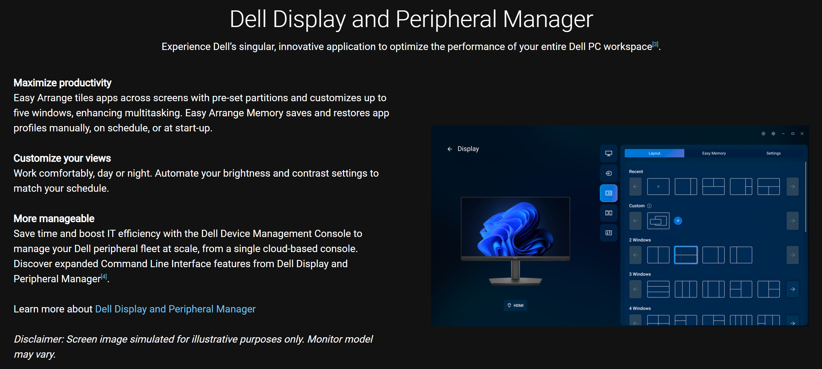 Dell Display Manager Compatibility Yes (includes Easy Arrange and Easy Arrange Memory)