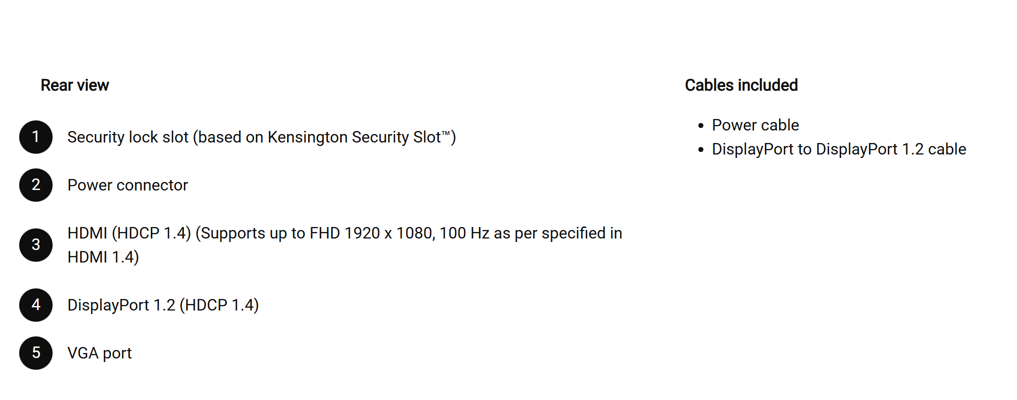 Connectivity 1 x HDMI 1.4 port, 1 x DisplayPort 1.2 port, 1 x VGA port