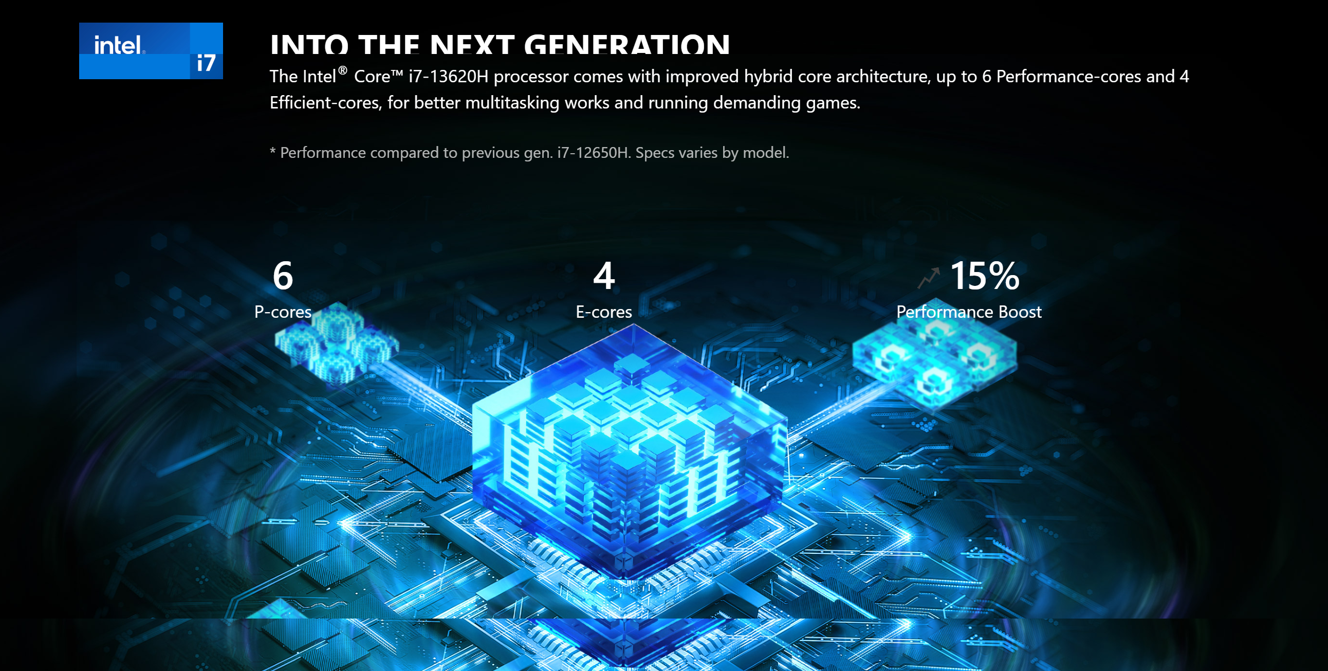 Intel® Core™ i5-13420H Processor 2.1 GHz (12MB Cache, up to 4.6 GHz, 8 cores, 12 Threads) |
