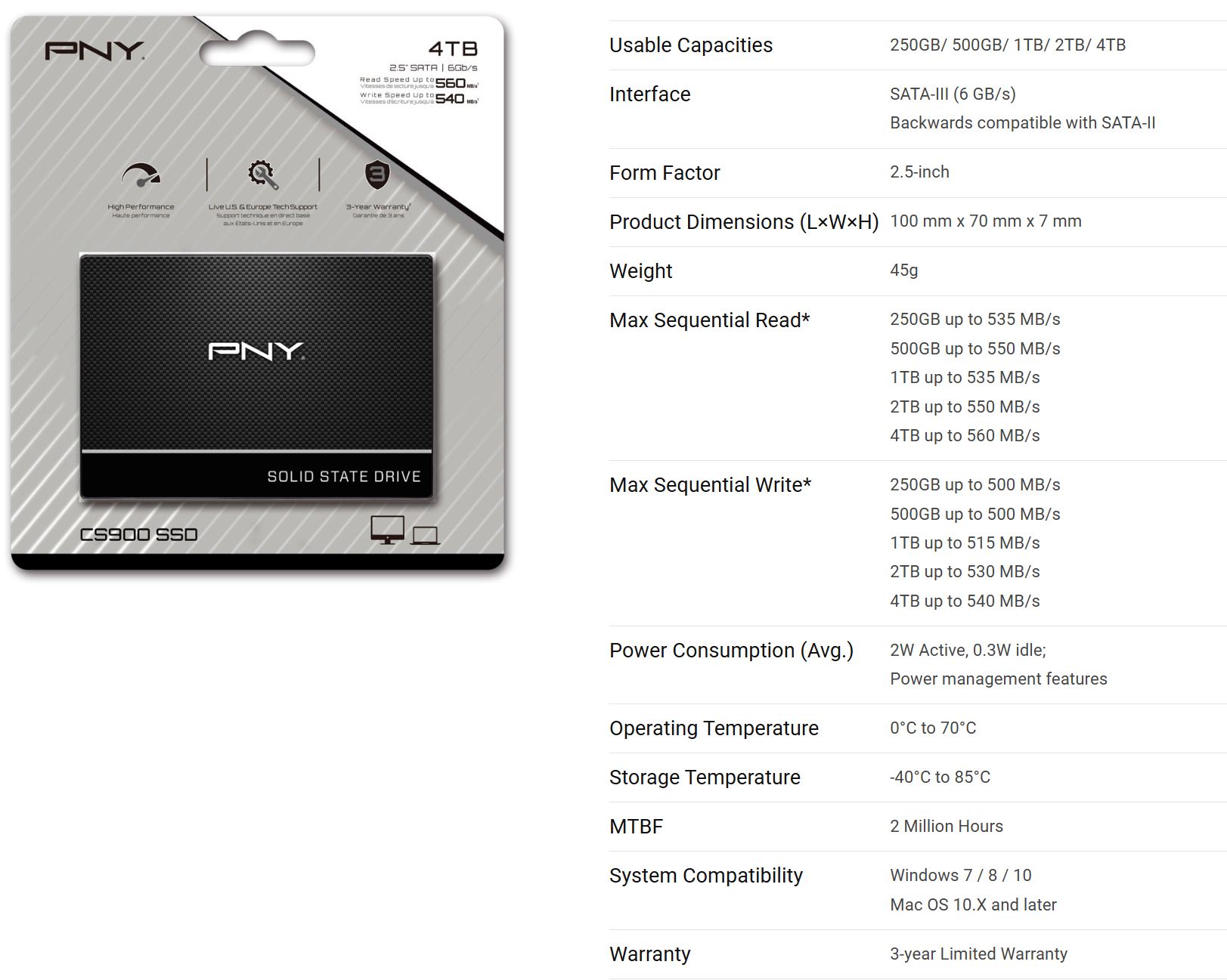 Usable Capacities : 500GB