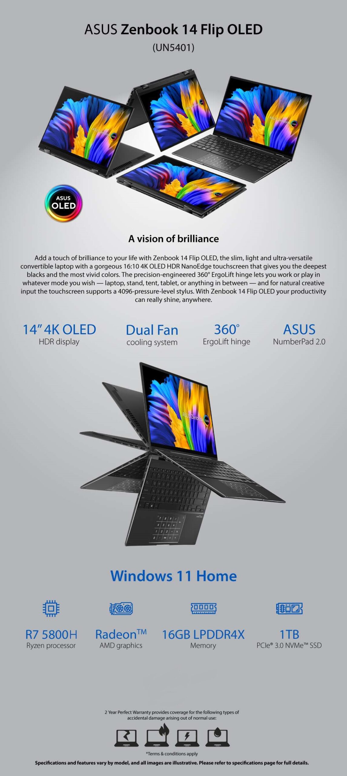 | Processor | AMD Ryzen™ 7 5800H/HS Mobile Processor (8-core/16-thread, 20MB cache, up to 4.4 GHz max boost) *The R7-5800H and R7-5800HS have the same performance on ASUS laptops due to ASUS’s innovative thermal design and clock boost technology |